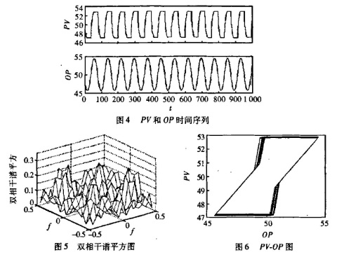 存在非線性閥的控制回路產(chǎn)生非高斯性和非線性時(shí)間序列。Choudhury在2003年,提出根據(jù)控制誤差信號(hào)(SP2PV)的非高斯性和非線性作為確定控制回路性能的方法。這種方法利用標(biāo)準(zhǔn)重譜或雙相干譜的靈敏度檢測(cè)信號(hào)的非線性。非線性時(shí)間序列的一個(gè)顯著特點(diǎn)是出現(xiàn)相位耦合,一個(gè)頻率下的相位需要由其它頻率的相位來(lái)決定。相位耦合時(shí)高階譜所具有的特性可以通過(guò)信號(hào)的雙相干譜檢測(cè)。