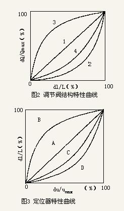 在沒安裝定位器的情況下,K1為一常數(shù)即閥行程與到閥控制信號成線性關(guān)系,此時調(diào)節(jié)閥的靜態(tài)特性即為其結(jié)構(gòu)特性,無法改變;如果安裝了定位器,則K1即為定位器的性能特性。對于機械力平衡式定位器來說可以通過更換反饋凸輪來加以改變,而對于智能型定位器由于預先進行了程序設(shè)置,因此只需要通過功能鍵進行選擇就可以任意改變K1,從而改變調(diào)節(jié)閥的靜態(tài)特性。當現(xiàn)有調(diào)節(jié)閥的流量特性符合需要時,只需將定位器特性設(shè)置為線性。