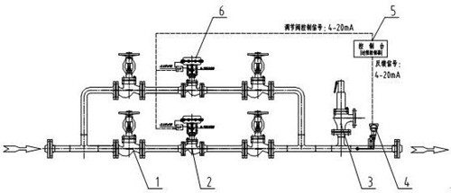 1、自力式調(diào)壓閥 2、截止閥 3、儲汽罐 4、安全閥
